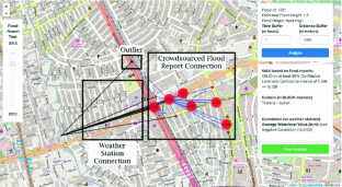 Since the late 1990 s, the intensity of tropical cyclones have increased over time, causing massive flooding and landslides in thePhilippines. Nationwide Operational Assessment of Hazards or Project NOAH was put in place as a responsive program for disaster prevention and mitigation. Part of the solution was to set up nababaha.com(www.nababaha.com) and FloodPatrol which provided the public with a web and mobile phone based application for reporting flood height. This paper addresses the problem of providing an interactive and visual method of validating crowdsourced flood reports for the purpose of helping frontline responders and decision makers in disaster management. The approach involves finding the neighborhood of the crowdsourced flood report and weather station data based on their geospatial proximity and time record. A report is classified as correct if it falls within the obtained confidence interval of the crowdsourced flood report neighborhood. The neighborhood of crowdsourced flood reports are correlated with weather station data, which serves as the ground truth in the validation process. Use cases are presented to provide examples of automatic validation. The results of this study is beneficial to disaster management coordinators, first-line responders, government unit officials and citizens. The system provides an interactive approach in validating reports from the crowd, aside from providing an avenue to report flood events in an area. Overall, this contributes to the study of how crowdsourced reports are verified and validated.