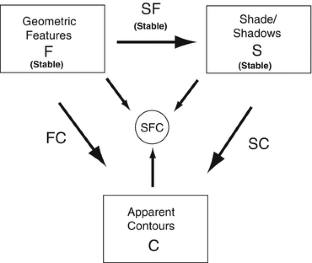 In this section, we introduce the general framework for approaching the classification of the local features of images of objects in natural images. Two general considerations are that the objects will either be surfaces with boundary edges (representing physical objects that are “thin surfaces”) or 3-dimensional objects whose boundary surfaces exhibit certain geometric features. We allow the surface features to be generic geometric features including generalized notions of creases, corners, marking curves, as well as edges (see below). We give more precise descriptions of the geometric features later in this chapter and Chap. 4
