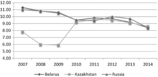 Eurasian Economic Commission. (2016). Mutual trade in goods of the Customs Union and Common Economic Space members for 2015. Statistical bulletin [online]. Accessed October 5, 2016, from http://www.eurasiancommission.org/ru/act/integr_i_makroec/dep_stat/tradestat/tables/intra/Documents/2015/12_180/I201512_2_2.pdf