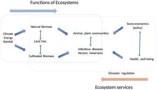 The increasing number of emerging infectious diseases over the past few decades can likely be explained by a loss in biodiversity. Deforestation and forest fragmentation on large spatial scales represent major threats to biodiversity and species interactions, particularly in a biodiversity hot spot like Southeast Asia. Biodiversity appears as a source of pathogenic diversity, but biodiversity loss is a source of epidemics, at least at a national level. At local levels conflicting results emerged on the supposed role of biodiversity in regulating the epidemiology of diseases. In this chapter we investigate (i) the origins and consequences of the potential impacts of land use changes for the spread and emergence of infectious diseases, (ii) what the likely ecological mechanisms are, and (iii) how a new framework was embedded in the ecosystem services’ approach (iv) the various gaps in knowledge impeding the full implementation of (iii) and (v) the lack of explicit reference to coviability.