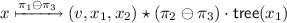 Using the folding rule \(F_2\), we can identify the antiframe as \(\mathsf {tree}(x_2)\). Now suppose we have a rational permission \(\pi \in \mathbb {Q}\) distributed everywhere, i.e.: