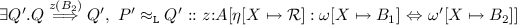 then \((P', Q') \in \mathcal {R}~{:}{:}~z{:}A~\!\Leftrightarrow \!~B\). -