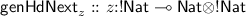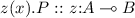 The encoding translates the monadic type \(\{\overline{x_i{:}A_i} \vdash z{:} A\}\) as a linear function