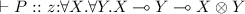which simultaneously deconstructs the pair M, binding its first and second projection to x and y in N, respectively; \(!M\) denotes a term M that does not use any linear variables and so may be used an arbitrary number of times;