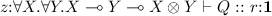 \(P \approx _{\mathtt {L}}Q~{:}{:}~ z{:}A\multimap B [\eta : \omega \,\!\Leftrightarrow \!\,\omega ']\) iff \(\forall P', y.~(P \xrightarrow {z(y)} P') \Rightarrow \exists Q'. Q {\mathop {\Longrightarrow }\limits ^{z(y)}} Q'\) s.t. \(\forall R_1,R_2.R_1 \approx _{\mathtt {L}}R_2~{:}{:}~ y{:}A [\eta : \omega \,\!\Leftrightarrow \!\,\omega '] (\nu y)(P' \,|\, R_1) \approx _{\mathtt {L}}(\nu y)(Q' \,|\, R_2)~{:}{:}~ z{:}B [\eta : \omega \,\!\Leftrightarrow \!\,\omega ']\) -