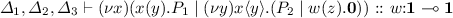 expects to receive a session of type A which will then be used to produce a session of type B. Dually, session output (rule \({{\otimes }\mathsf {R}}\)) is achieved by producing a fresh session of type A (that uses a disjoint set of sessions to those of the continuation) and outputting the fresh session along z, which is then a session of type B. Linear composition is captured by rule \(\mathsf {cut}\) which enables a process that offers a session x : A (using linear sessions in \(\varDelta _1\)) to be composed with a process that uses that session (amongst others in \(\varDelta _2\)) to offer z : C. As shown in [7], typing entails Subject Reduction, Global Progress, and Termination.