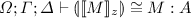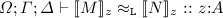 binds the underlying exponential term of M as u in N; \({{\varLambda } X.M}\) is the type abstraction former; M[A] stands for type application;
