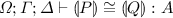 Given a type A and mappings \(\omega , \omega ', \eta \), we define logical equivalence, noted