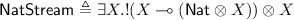 denotes a session that waits to receive a channel of type A and will then proceed as a session of type B; dually, \(A~\otimes ~B\) denotes a session that sends a channel of type A and continues as B; \( A~ \& ~B\) denotes a session that offers a choice between proceeding as behaviours A or B; \(A \oplus B\) denotes a session that internally chooses to continue as either A or B, signalling appropriately to the communicating partner; \(!A\) denotes a session offering an unbounded (but finite) number of behaviours of type A; \(\forall X.A\) denotes a polymorphic session that receives a type B and behaves uniformly as \(A\{B/X\}\); dually, \(\exists X.A\) denotes an existentially typed session, which emits a type B and behaves as \(A\{B/X\}\).