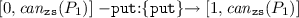 by Definition 3(1). Moreover, since get of \(P_1\) is not admissible in 0, there are no silent transitions out of \([0, can _{{\texttt {zs}}}(P_{1}) ]\) according to Definition 3(2). Thus, \([0, can _{{\texttt {zs}}}(P_{1}) ] \Vdash _{\texttt {zs}} \mathop {\downarrow }{{\texttt {put}}} \), as claimed.