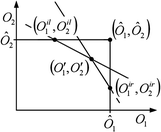 If ΔT 1 and ΔT 2 denote the green time periods for the intersecting flows 1 and 2, respectively, the corresponding red time periods for a periodic signal control are ΔT 2 and ΔT 1, to which the switching setup time of duration τ must be added. From formula (23) and with \({O}_{i} =\widehat{ Q}\) we obtain \(\Delta {T}_{1} = (\Delta {T}_{2} + \tau )\widehat{Q}/(\widehat{Q} - {A}_{1})\) and \(\Delta {T}_{2} = (\Delta {T}_{1} + \tau )\widehat{Q}/(\widehat{Q} - {A}_{2})\). Using the definition \({T}^{\mathrm{cyc}} = \Delta {T}_{1} + \tau + \Delta {T}_{2} + \tau \) for the cycle time, we finally arrive at (66).