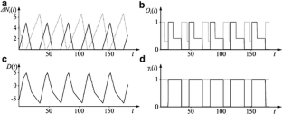 The arrival flow A j (t) has previously been denoted by \({Q}_{j}^{\mathrm{arr}}(t)\), the potential arrival flow \(\widehat{{A}}_{j}(t)\) by \({Q}_{j}^{\mathrm{arr,pot}}(t)\), the departure flow O j (t) by \({Q}_{j}^{\mathrm{dep}}(t)\) and the potential departure flow \(\widehat{{O}}_{j}(t)\) by \({Q}_{j}^{\mathrm{dep,pot}}(t)\).