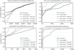 With the exception of some on-going new projects, see for example, Chantarat et al. (2013) and various piloted projects funded by USAID-I4 Index Insurance Innovation Initiative at http://i4.ucdavis.edu/projects/. These ongoing pilot projects undertake rigorous contract design and ex-ante evaluation using high-quality household welfare data in addition to their proposed ex-post evaluation through multi-year household-level impact assessment.