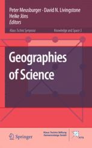 - Meusburger, P. (2000). The spatial concentration of knowledge: Some theoretical considerations. Erdkunde, 54, 352–364.CrossRefGoogle Scholar