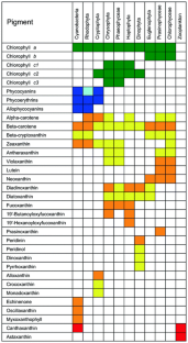Jeffrey SW, Vesk M (1997) Introduction to marine phytoplankton and their pigments. In: Jeffrey SW, Mantoura RFC, Wright SW (eds) Phytoplankton pigments in oceanography. Unesco Publishing, Paris, pp 37–84