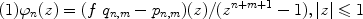 is analytic. Let Rn,m = Pn,m/Qn,m, where Pn,m and Qn,m have no common divisor and the polynomial Qn,m is monic. Denote by ∥ ∥ the norm of the (m + 1)-dimensional space of polynomial coefficients. As a further generalization of a generalized theorem of Montessus de Ballore (1902), due to E. B. Saff (1972), the author proves that if there exists a polynomial