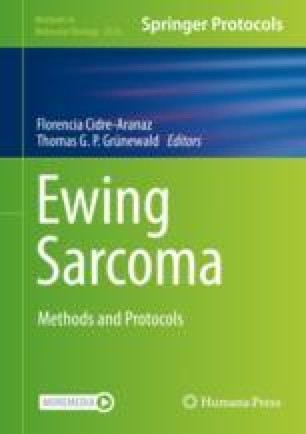 - 14.Grünewald TGP, Bernard V, Gilardi-Hebenstreit P et al (2015) Chimeric EWSR1-FLI1 regulates the Ewing sarcoma susceptibility gene EGR2 via a GGAA microsatellite. Nat Genet 47:1073–1078PubMedPubMedCentralCrossRefGoogle Scholar