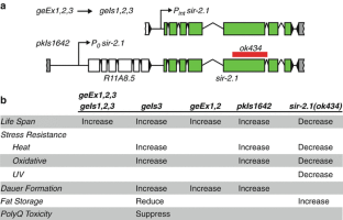Viswanathan M, Guarente L (2011) Regulation of Caenorhabditis elegans lifespan by sir-2.1 transgenes. Nature 477(7365):E1–E2. doi:10.1038/nature10440, pii: nature10440