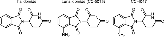 Chemical structures of thalidomide, lenalidomide, and actimid (CC-4047)
