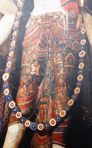Hundreds of miniatures consisting of palaces and temples depicted on the dhoti of Avalokiteśvara