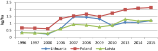 Latvijas statistika (2017) Pesticide use per 1 ha of sown area: 1.04 kg on cereals and 1.54 kg on rape | Latvijas statistika. [online]. Available at: http://www.csb.gov.lv/en/notikumi/pesticide-use-1-ha-sown-area-104-kg-cereals-and-154-kg-rape-36641.html. Accessed 31 Oct 2017